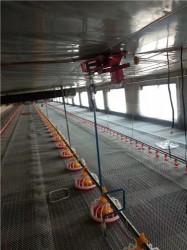 由料斗、輸料管、絞龍、料盤、吊掛起落裝配、機電和料位傳感器構成。其首要功效是把料斗中的料保送到每一個料盤中去,保障肉雞的食用,并由料位傳感器來主動節制機電的保送啟閉,到達主動送料的目標。